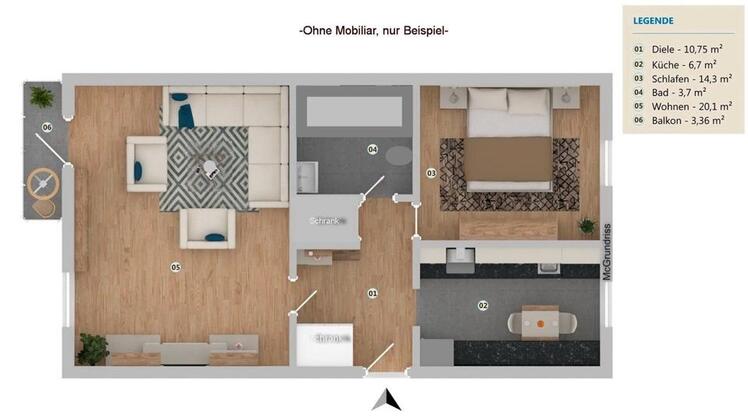 Mehr zum Angebot Helle 2-Zimmer Wohnung zu vermieten: