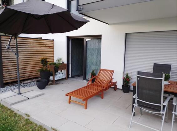 Die Erdgeschosswohnung mit Terrasse und Garten, befindet sich in einem energieeffizienten Ende 2020 erbauten Mehrparteienhaus.