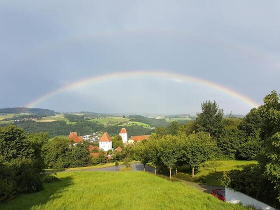 Vermietet wird ab 01.07.2026 eine tolle 2 Zimmer Wohnung, 62 m² mit Balkon, eigener Gartenanteil, 2 Stellplätzen, Kellerraum absprerrbar und einzigartigem Blick nach Österreich.